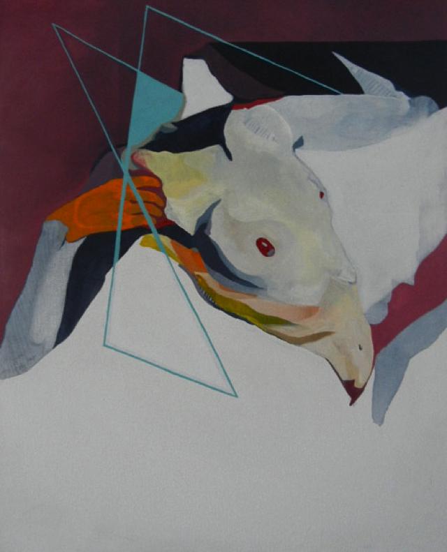 Beata is thrilled living and working in NYC. She moved to the city less than a year ago and the work she is producing is an encapsulation of her experiences thus far. From the dark phase that consumed the work upon arrival to the city with only a suitcase and a box of acrylics to the new found realism and succulent colors that are surfacing at this point of her career, her work is truly a self-portrait through the painted flesh. Her most recent work “Simple Math” is a sarcastic approach to the complexities of life. In the work she is pushing the idea of female sexuality by candidly bringing attention to the sex. Through color and geometry, such a complex composition of the flesh is broken down and made to look “simple”. The work represents an important checkpoint for the artist, now comfortable and familiar with the city, working as an artist assistant to Jeff Sonhouse and knowing “the ropes” of the Big Apple, the world is her oyster, and what better place to be than that NYC.