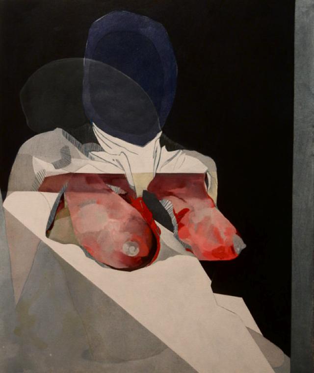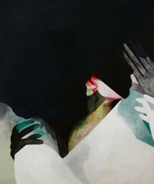 Beata’s works are compositionally, chromatically and geometrically conscious. They are puzzles that she builds from a single figurative line drawing. Once the first colors are placed, every additional color is affected until a compositional balance is created. The work exists to demonstrate a non-traditional execution of the flesh, arising attention to the moments she finds most intriguing and inviting the audience to experience that same driven thrill through the femme.